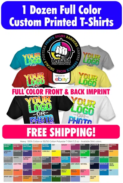 Pre-owned 1 Dozen Full Color Custom Printed T-shirts Front Print Free Shipping In Antique Cherry Red