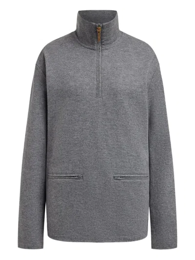 Half-zip High-neck Sweatshirt In Gray