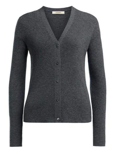 Ribbed V-neck Cardigan In Gray