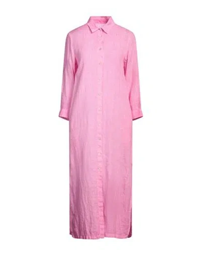 Woman Midi Dress Fuchsia Size 12 Linen In Pink