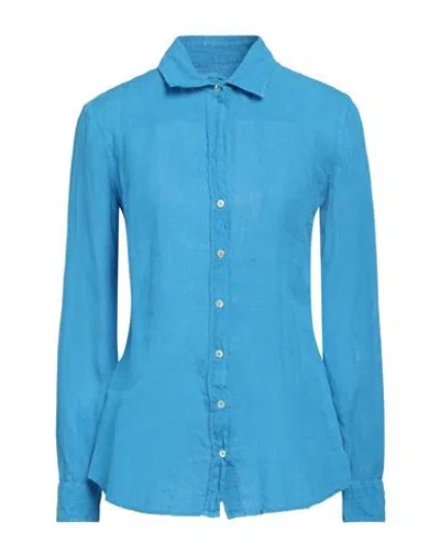 Woman Midi Dress Azure Size 6 Linen In Blue
