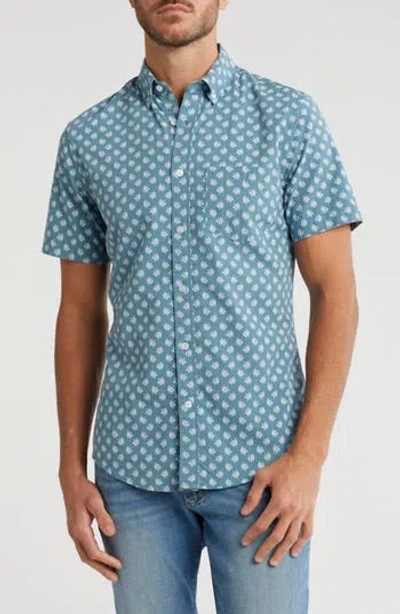 Sailboat Print Short Sleeve Cotton Stretch Poplin Button-up Shirt In White Simple Sailboats