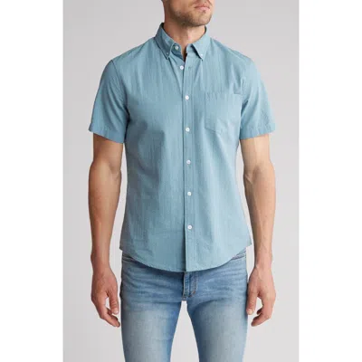 Short Sleeve Seersucker Button-down Shirt In Blue Smoke