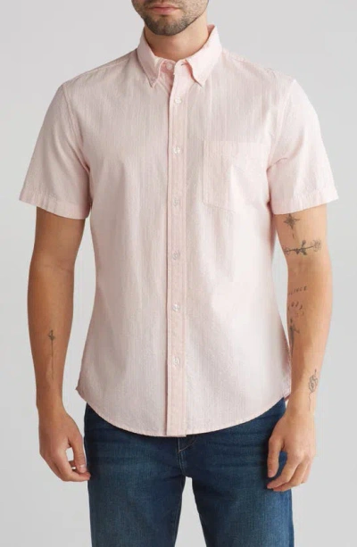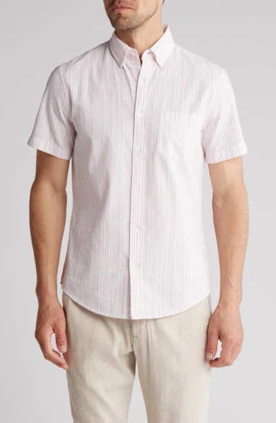Short Sleeve Seersucker Button-down Shirt In Pink Cake