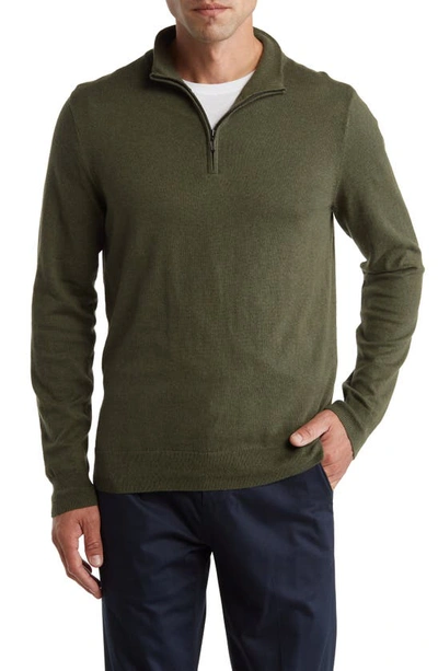 14th And Union Cotton Cashmere Quarter Zip Trim Fit Sweater In Olive Night