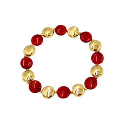 Women's Gold / Red Istanbulite Red Enamel Bracelet In Multi