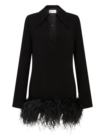 Hodi Feather-trim Mini Dress In Black