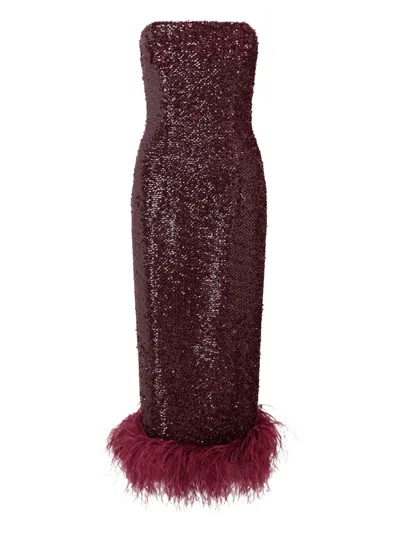Lett Feather-trim Maxi Dress In Red