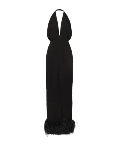 Backless Feather-trimmed Crepe Dress In Black