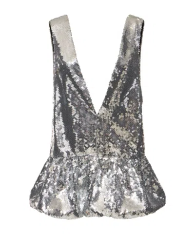 Solaris Cropped Oberteil Aus Mesh Mit Pailletten In Metallic