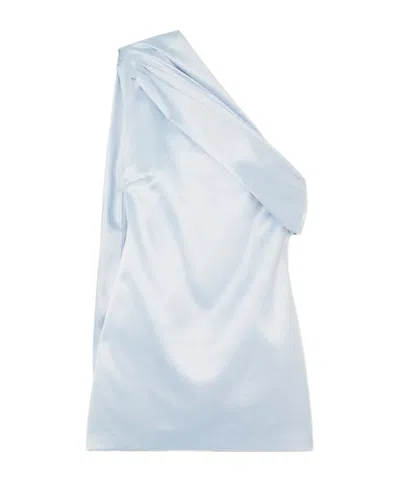 Cynthia Feather-trimmed Crepe De Chine Halterneck Mini Dress In Blue