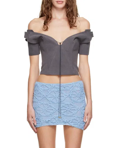 Blaise Strapless Cropped Crystal-embellished Satin Bustier Top In Blue Crystal