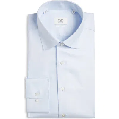 Slim Fit Solid Non-iron Cotton Dobby Dress Shirt In Blue
