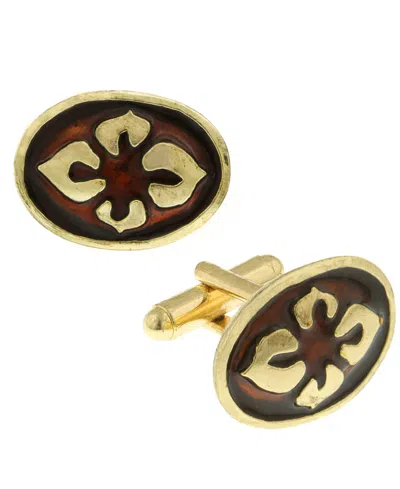 Jewelry 14k Gold-plated Enamel Flower Cufflinks In Brown