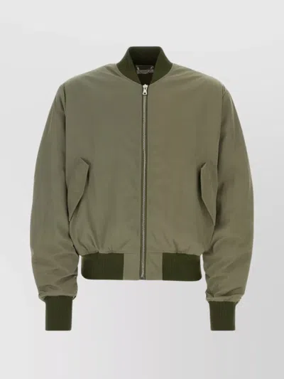 Bomber Jacket With Ribbed Cuffs And Hem In Green