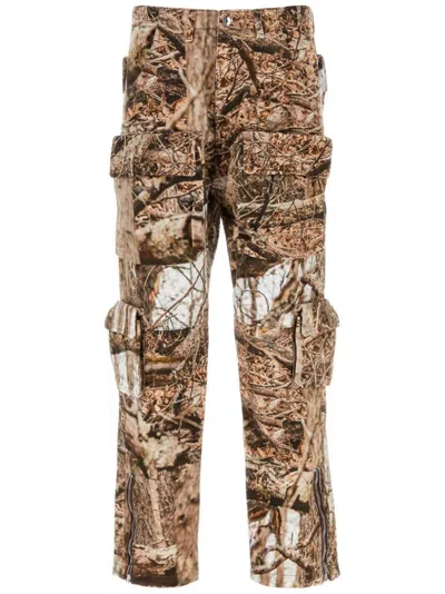 Cargo Jeans In Printed Cotton In Brown