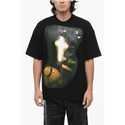 Cotton Crew-neck T-shirt With Maxi Print On The Front In Black