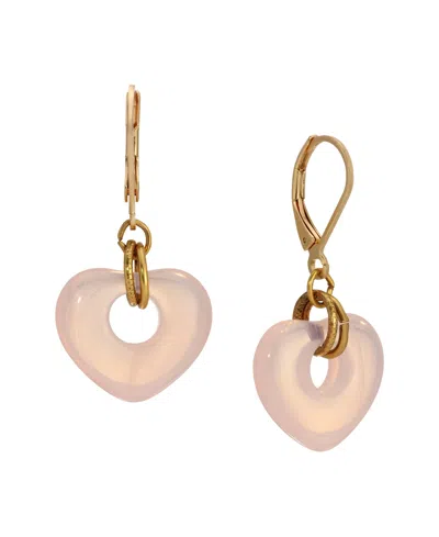 Gold Tone Heart Drop Leverback Earrings In Pink