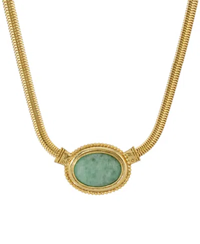 Gold-tone Semi Precious Oval Stone Necklace In Green