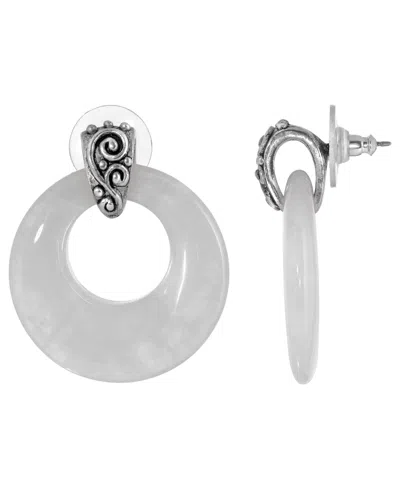 Pewter Semi Precious Round Quartz Hoop Earrings In White