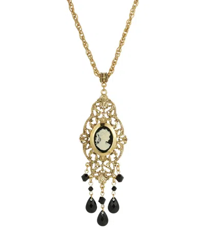 Women's Gold Tone Black Oval Cameo Locket Necklace