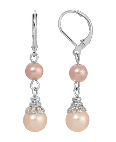 Silver Tone Crystal Pink Flower Beaded Drop Wire Earring In White