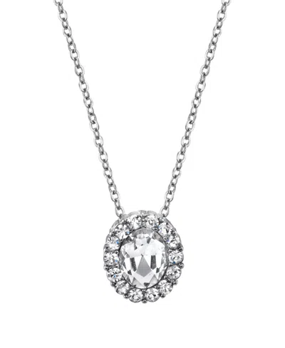 Silver-tone Crystal Oval Pendant Necklace 16" Adjustable In White