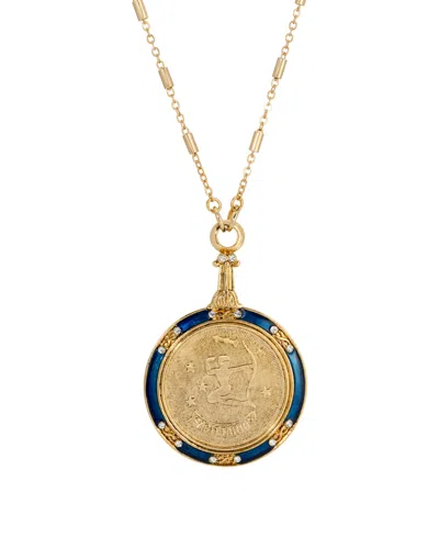 Blue Enamel Crystal Round Zodiac Necklace In Sagittarius