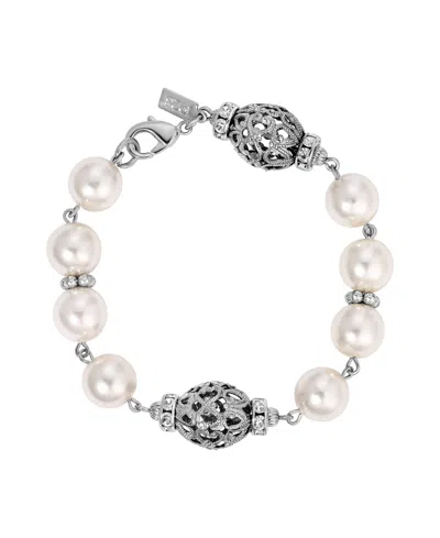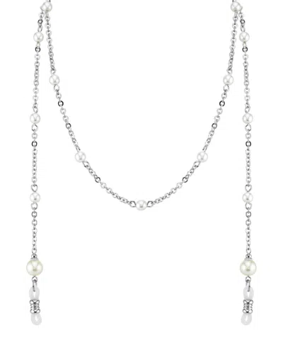 Silver-tone Chain With Simulated Pearl Eyeglass Holder 30" In White