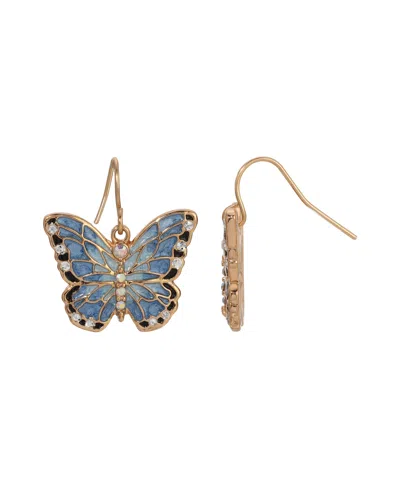 Gold-tone Semi Precious Triangle Stone Necklace In Blue