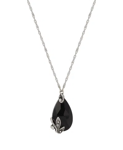 Women's Silver Tone Black Cameo Round Filigree Locket Necklace