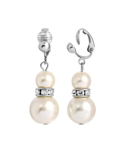 Graduated Faux Imitation Pearl And Crystal Clip Earrings In White