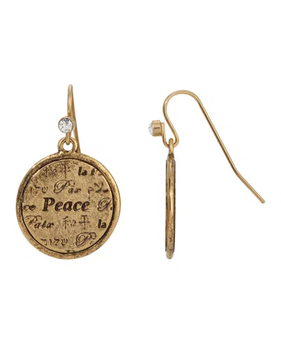 Multi Language Round Peace Medallion Earrings In Gold