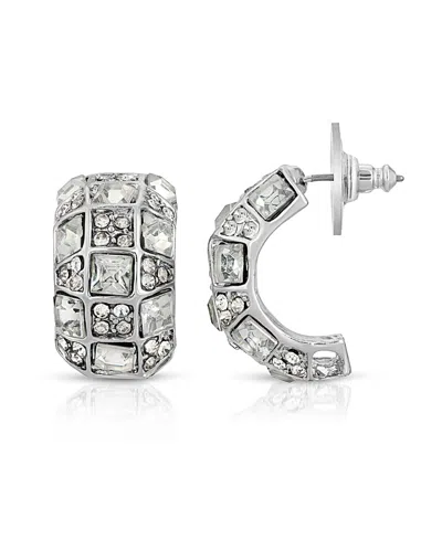 Women's Silver-tone Large Crystal Hair Barrette In White