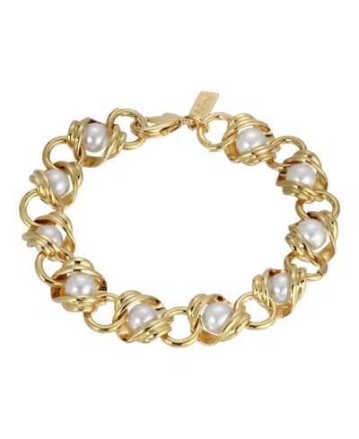 Women's 14k Gold-tone Chain With Imitation Pearl Inset Link Bracelet In White