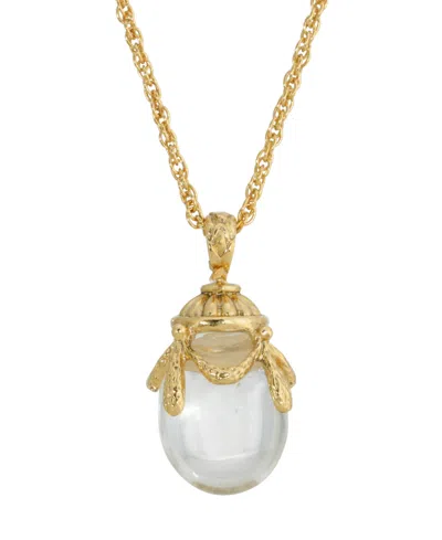 14k Gold Plated Clear Glass Egg Pendant Necklace In White