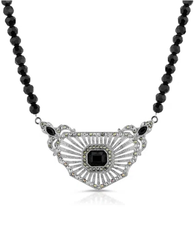 Crystal And Imitation Marcasite Collar Beaded Necklace In Black