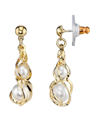 Gold-tone Simulated Pearl Drop Earrings In White