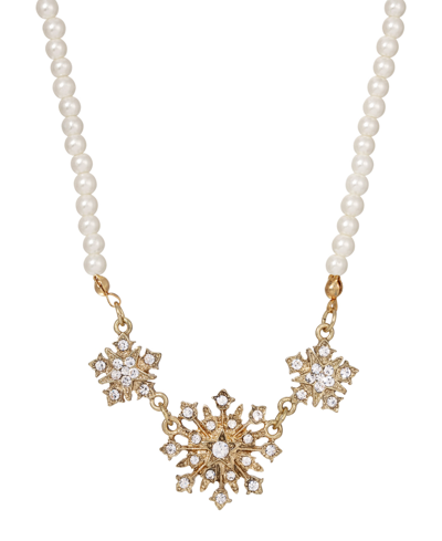 Imitation Pearl Crystal Starburst Collar Necklace In Gold-white