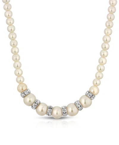 Silver-tone White Graduated Imitation Pearl And Crystal Necklace