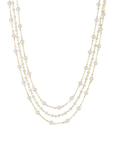 Women's Gold Tone Three Strand Imitation Pearl Chain Necklace In White
