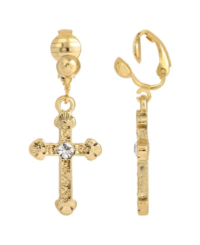 Crystal Accent Cross Clip Earrings In Gold-tone