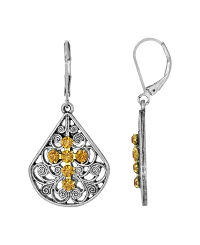 Women's Crystal Teardrop Wire Earrings In Yellow