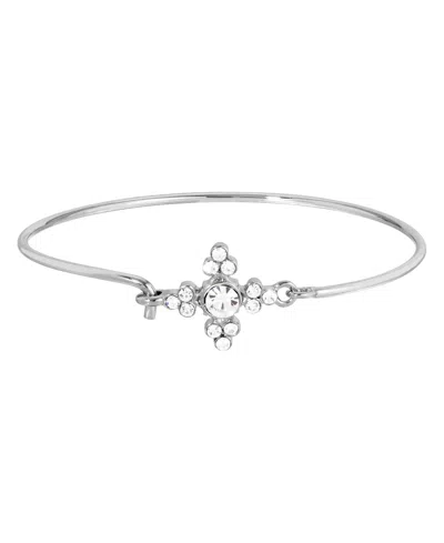 Pewter Fan Light Green Crystal Cross 16" Adjustable Necklace In Pink