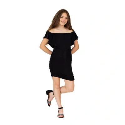 Solid Color One Shoulder Ruffle Knee Length Dress In Black