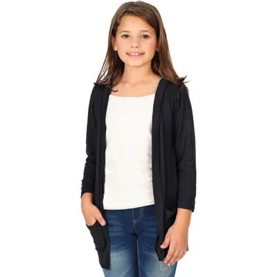 Open Front Long Sleeve Pocket Cardigan In Black