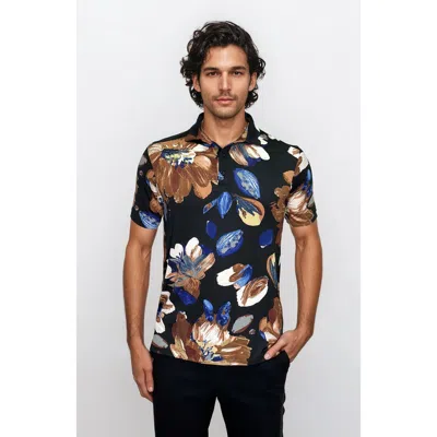 Wrinkle Resistant 3 Button Brown Floral Polo Shirt In Multi