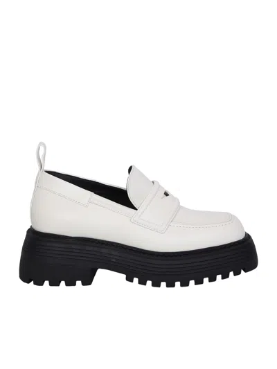 Smooth Calf Leather Moccasin In Ivory Color In White