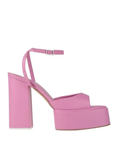 Woman Sandals Fuchsia Size 8 Leather In Pink