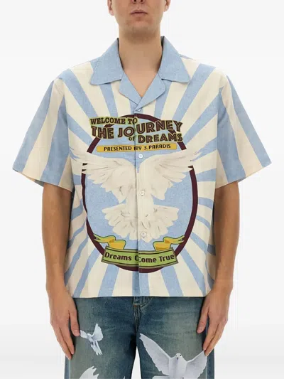 Flying Doves Button Shirt In Blue